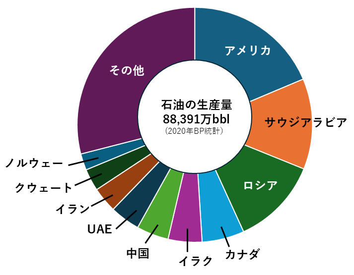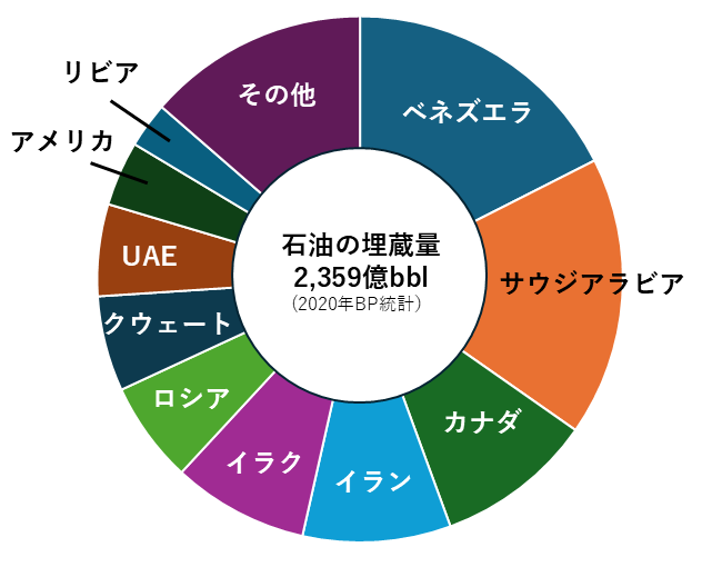 2020年末時点で確認できている埋蔵量は、1兆7324億バーレルと言われている。