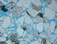 これは、砂岩といって、小さな砂粒が固まったものなんだ。砂粒自体は隙間がなくても、それが集まって石として固まると砂粒と砂粒の間に隙間ができるんだ。